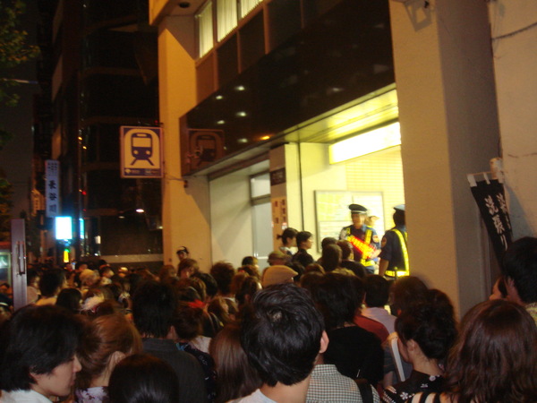 順著人潮擠出站已經聽到砰砰砰的煙火聲